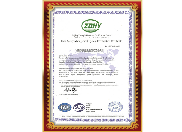 食品安全管理體系認證證書(英文版)