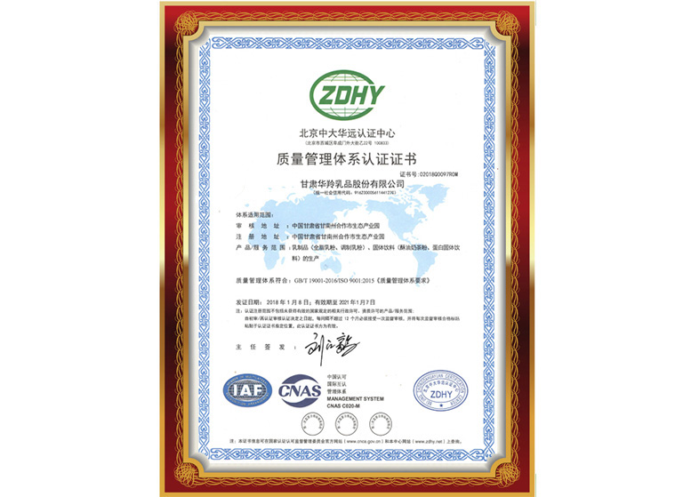 質量管理體系認證證書