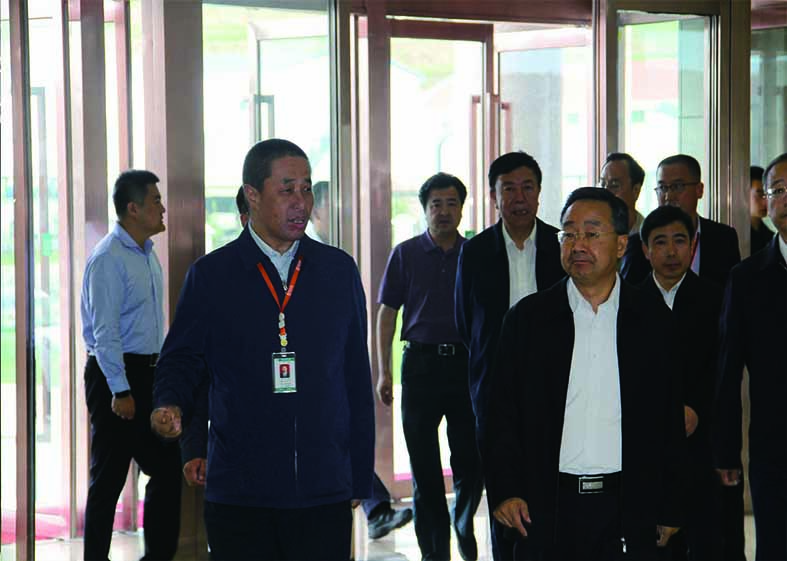 甘肅省委副書記、省長唐仁健(右)在華羚集團董事長敏文祥(左)的陪同下視察華羚