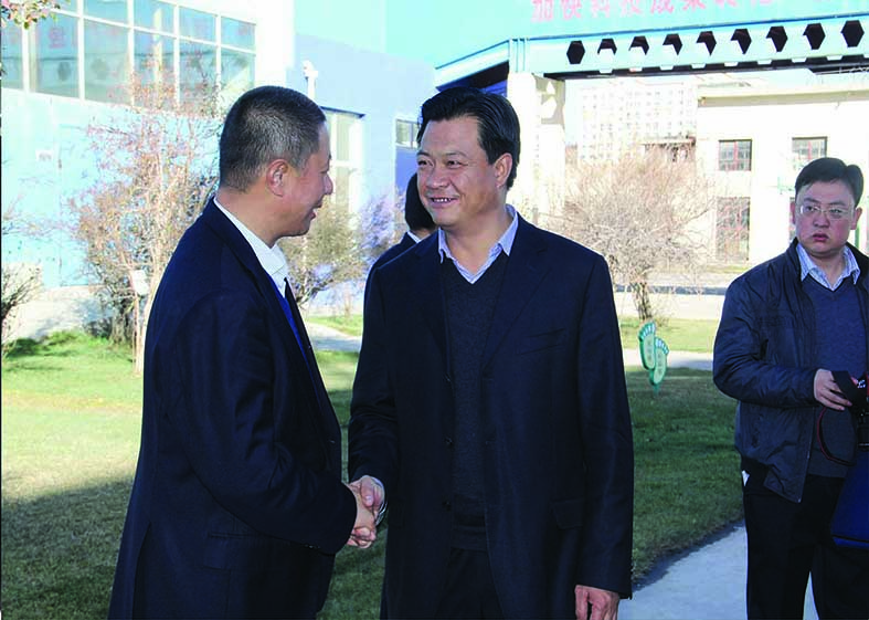 甘南州委副書記、州長趙凌云(右)在華羚集團董事長敏文祥(左)的陪同下視察華羚公司