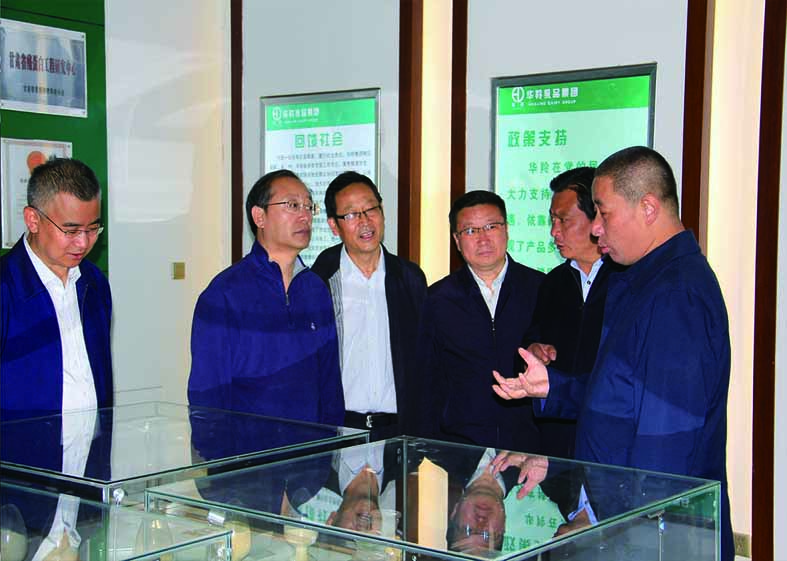 甘肅省委常委、副省長(zhǎng)宋亮(左二)在省政府秘書(shū)長(zhǎng)常正國(guó)(左三),甘南州委副書(shū)記、州長(zhǎng)趙凌云(右二)等領(lǐng)導(dǎo)及華羚集團(tuán)董事長(zhǎng)敏文祥(右一)的陪同下視察華羚