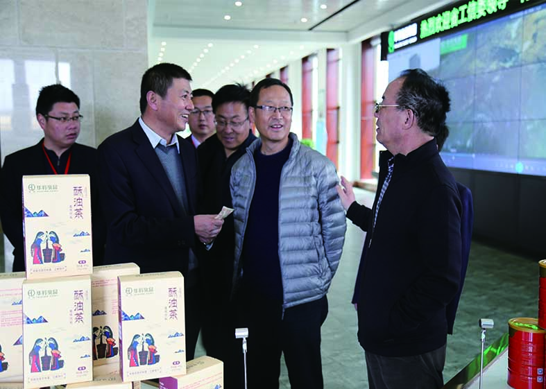 甘肅省工業和信息化委員會副主任高東生(中)在集團監事會敏福祥(左二)陪同下視察華羚公司