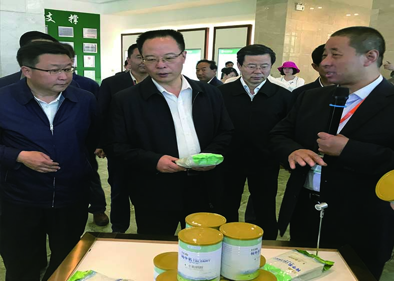 甘肅省委常委、蘭州市委書記李榮燦(右三)在華羚集團董事長敏文祥(左一)的陪同下視察華羚公司