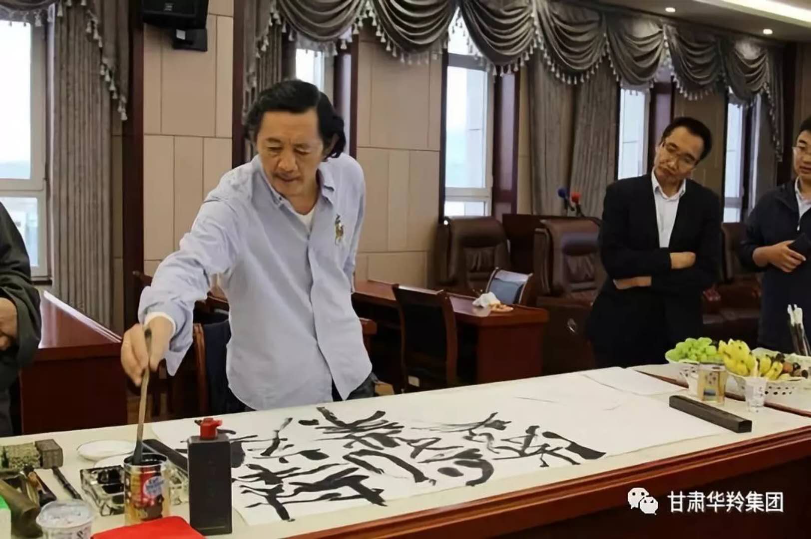 落墨有神韻,馨香隨筆行。2018年6月24日,四川中國國畫研究院副院長梅凱,四川省政協書畫院花鳥專委會委員周明安,中國書協會員、甘南州書協名譽主席常銘,甘南州文聯專家和學者,甘肅民族師范學院美術系書記、甘南州藏書協主席桑吉扎西,甘南州書協主席夏世龍等一行書畫家二十余人在甘肅華羚實業集團董事長敏文祥的陪同下蒞臨甘肅華羚乳品股份有限公司開展文化藝術交流聯誼活動。