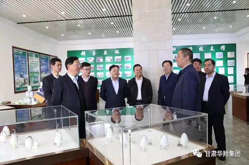 臧新軍行長一行參觀了華羚公司企業榮譽大廳、產品展示廳,華羚集團公司董事長敏文祥對中國銀行甘肅省分行一行領導的蒞臨表示熱烈歡迎,陪同調研中,董事長敏文祥就公司概況、科技投入、技術研發、產學研合作、產業帶動等情況向臧新軍行長一行進行了詳細的匯報和介紹。